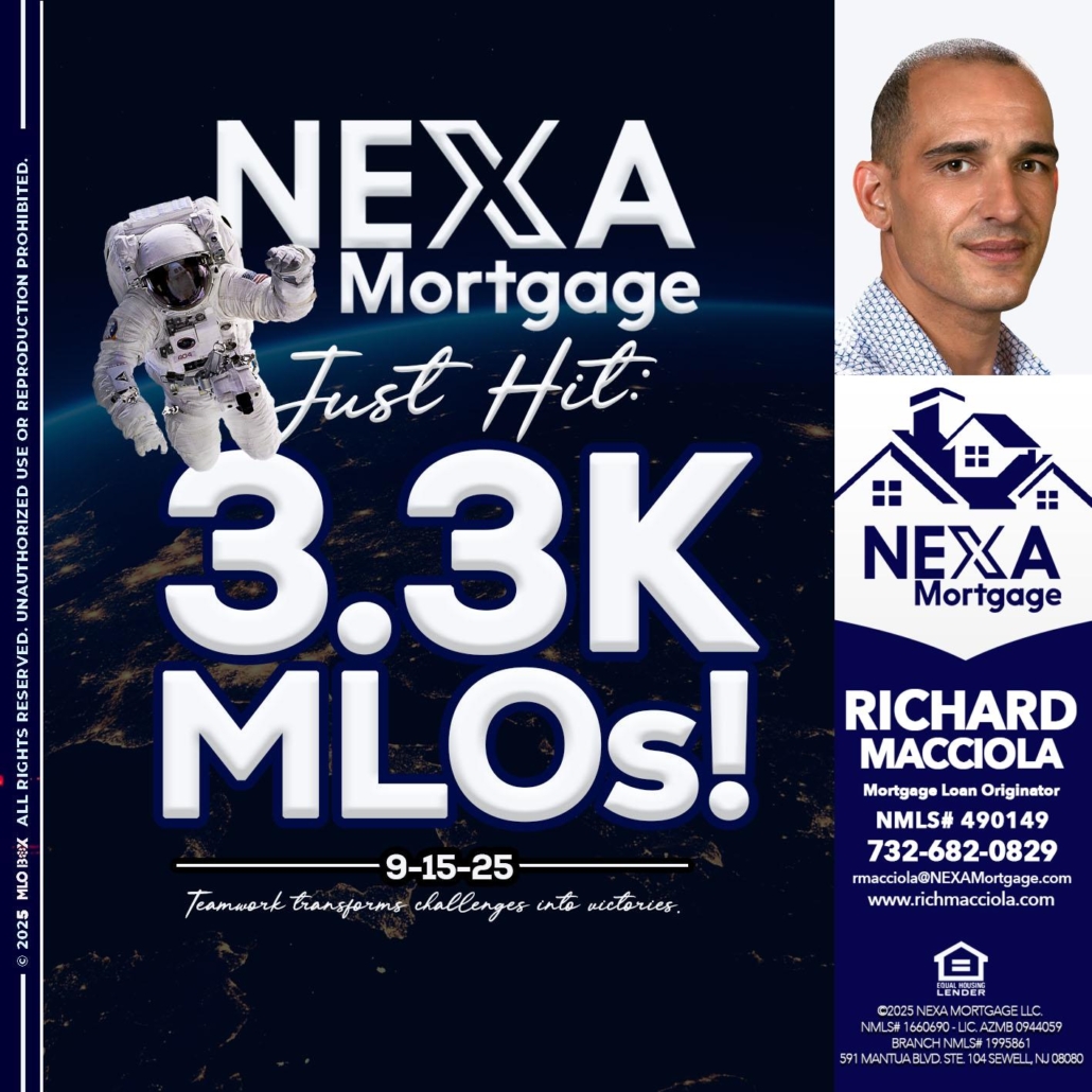 Hi, my name is Richard Macciola. I’m a Loan Officer with NEXA Mortgage LLC., offering personalized mortgage solutions, fast customized quotes, great rates and service with integrity.