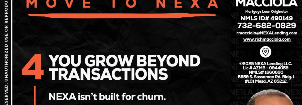 Hi, my name is Richard Macciola. I’m a Loan Officer with NEXA Lending LLC., offering personalized mortgage solutions, fast customized quotes, great rates and service with integrity.