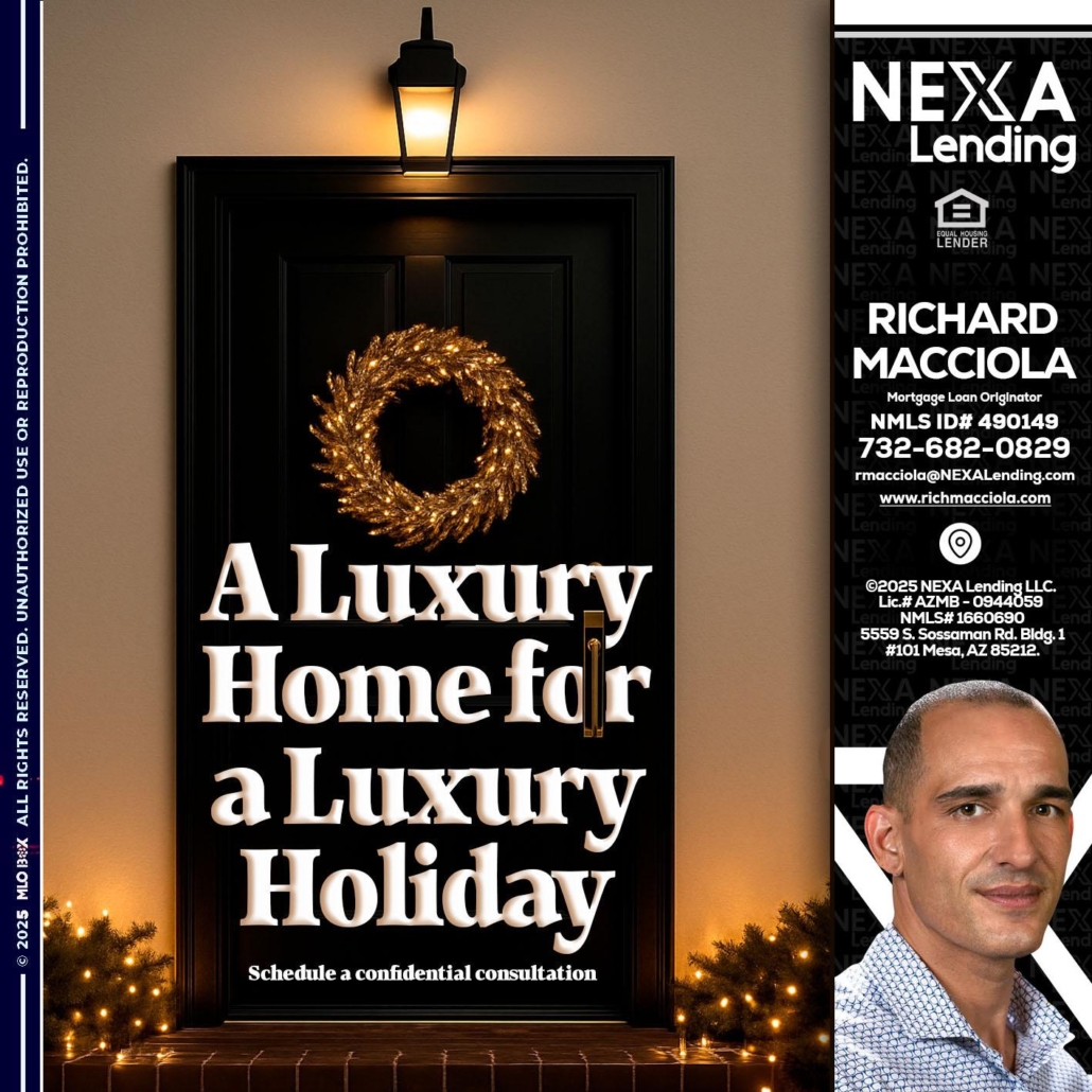 Hi, my name is Richard Macciola. I’m a Loan Officer with NEXA Lending LLC., offering personalized mortgage solutions, fast customized quotes, great rates and service with integrity.