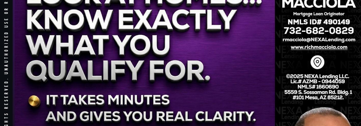 Hi, my name is Richard Macciola. I’m a Loan Officer with NEXA Lending LLC., offering personalized mortgage solutions, fast customized quotes, great rates and service with integrity.