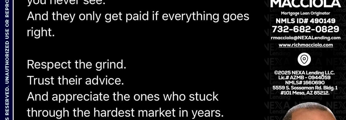 BUYERS - Richard Macciola -Mortgage Loan OriginatorHi, my name is Richard Macciola. I’m a Loan Officer with NEXA Mortgage LLC., offering personalized mortgage solutions, fast customized quotes, great rates and service with integrity.
