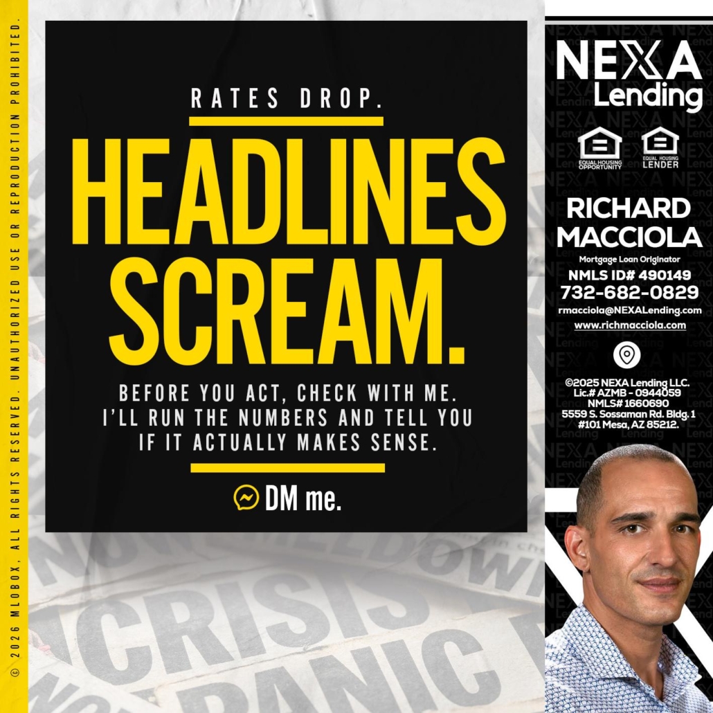 Hi, my name is Richard Macciola. I’m a Loan Officer with NEXA Lending LLC., offering personalized mortgage solutions, fast customized quotes, great rates and service with integrity.