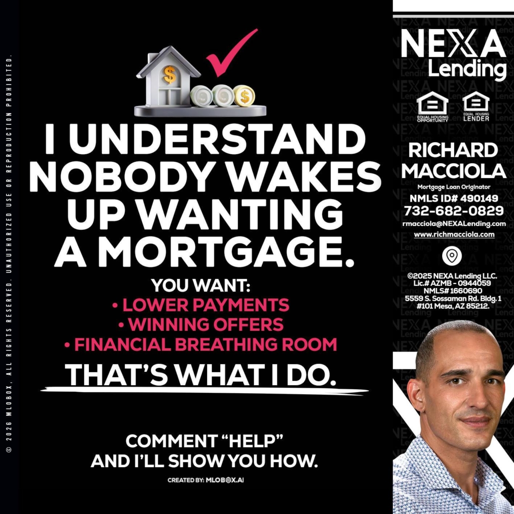 Hi, my name is Richard Macciola. I’m a Loan Officer with NEXA Lending LLC., offering personalized mortgage solutions, fast customized quotes, great rates and service with integrity.