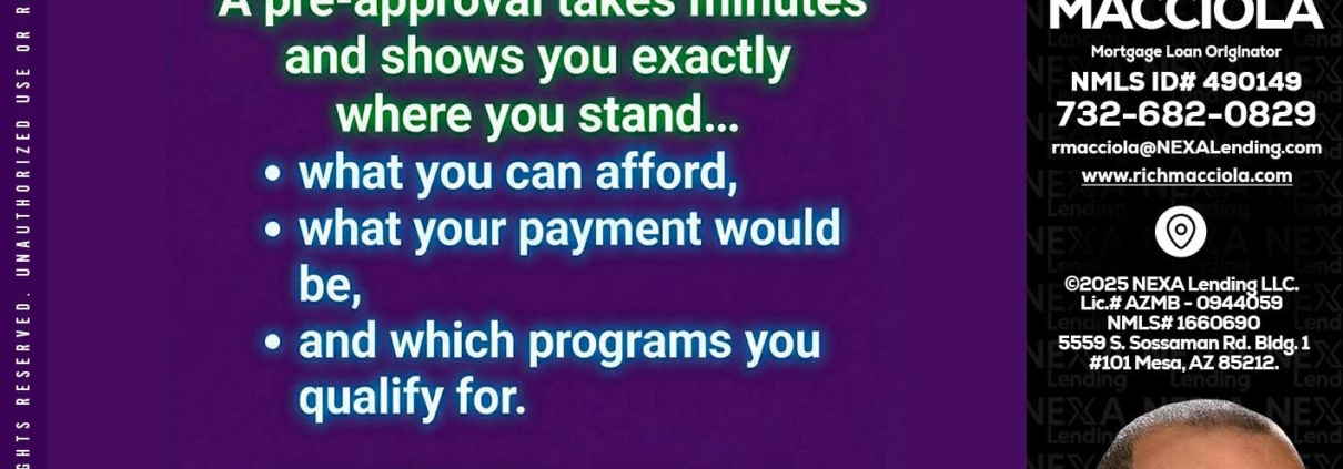 IF YOU THINKING - Richard Macciola -Mortgage Loan OriginatorHi, my name is Richard Macciola. I’m a Loan Officer with NEXA Lending LLC., offering personalized mortgage solutions, fast customized quotes, great rates and service with integrity.