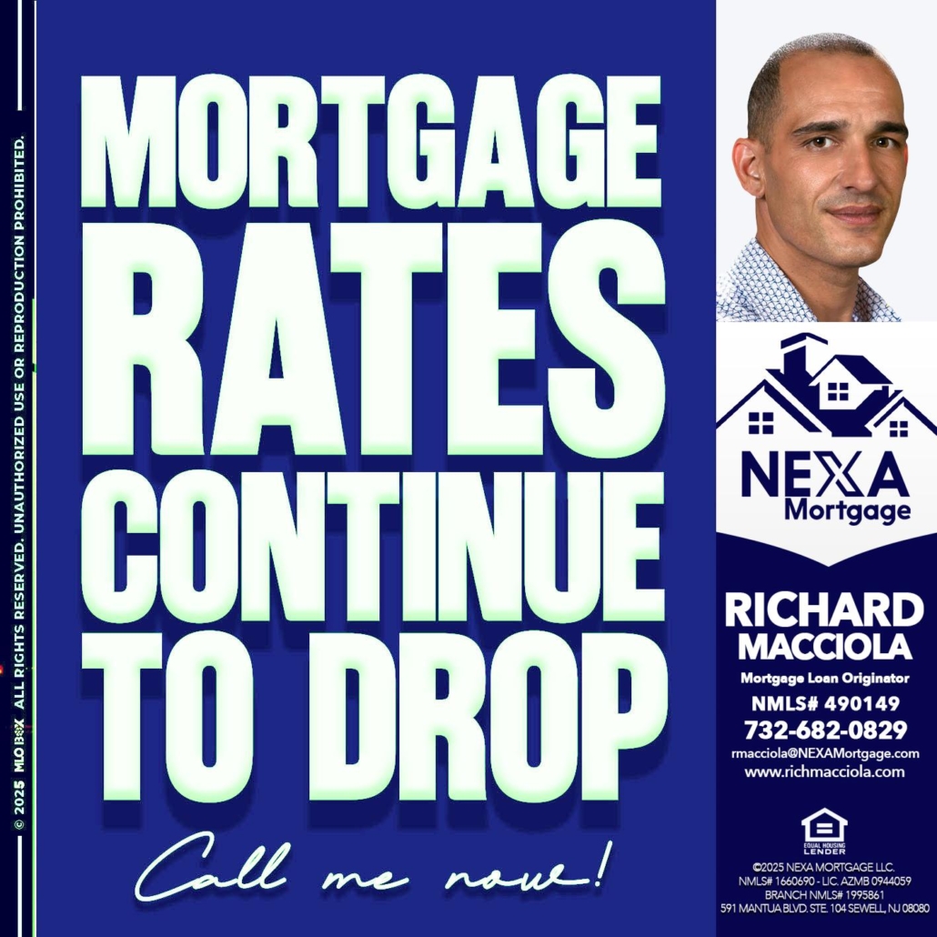 Hi, my name is Richard Macciola. I’m a Loan Officer with NEXA Mortgage LLC., offering personalized mortgage solutions, fast customized quotes, great rates and service with integrity.
