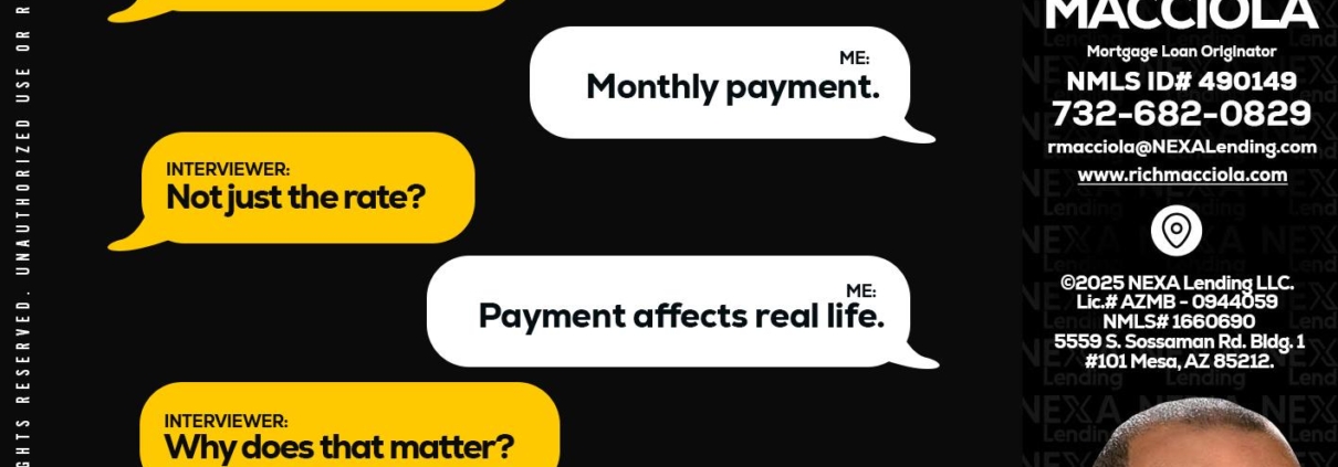 Hi, my name is Richard Macciola. I’m a Loan Officer with NEXA Lending LLC., offering personalized mortgage solutions, fast customized quotes, great rates and service with integrity.