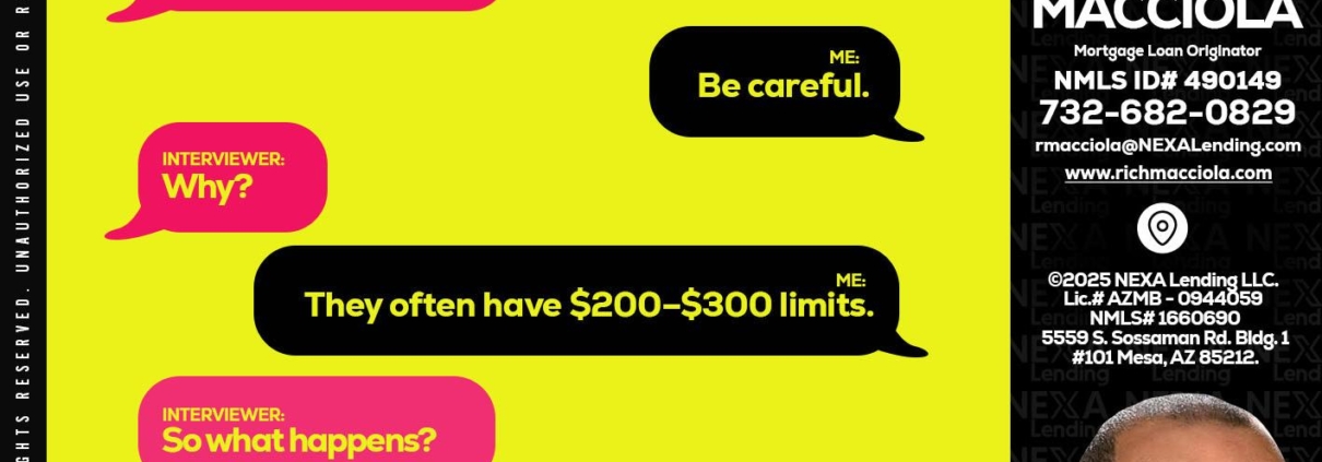 Hi, my name is Richard Macciola. I’m a Loan Officer with NEXA Lending LLC., offering personalized mortgage solutions, fast customized quotes, great rates and service with integrity.