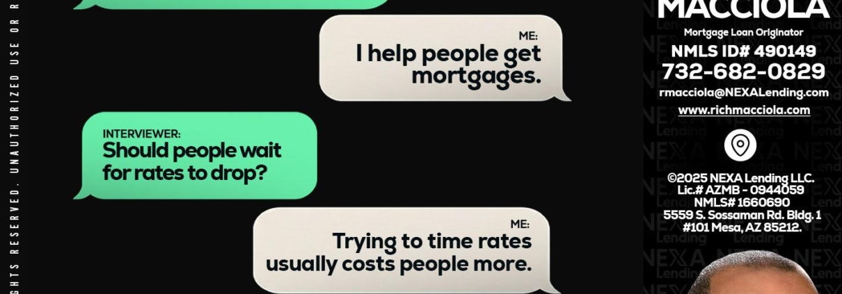 Hi, my name is Richard Macciola. I’m a Loan Officer with NEXA Lending LLC., offering personalized mortgage solutions, fast customized quotes, great rates and service with integrity.
