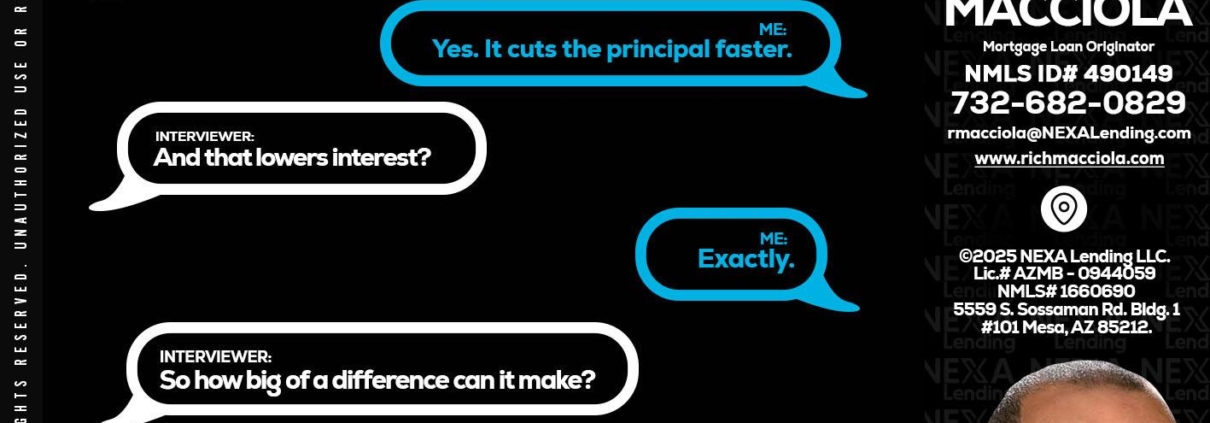 Hi, my name is Richard Macciola. I’m a Loan Officer with NEXA Lending LLC., offering personalized mortgage solutions, fast customized quotes, great rates and service with integrity.
