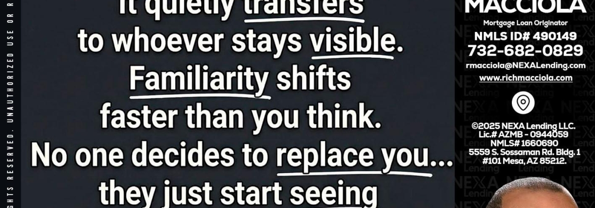 Hi, my name is Richard Macciola. I’m a Loan Officer with NEXA Lending LLC., offering personalized mortgage solutions, fast customized quotes, great rates and service with integrity.