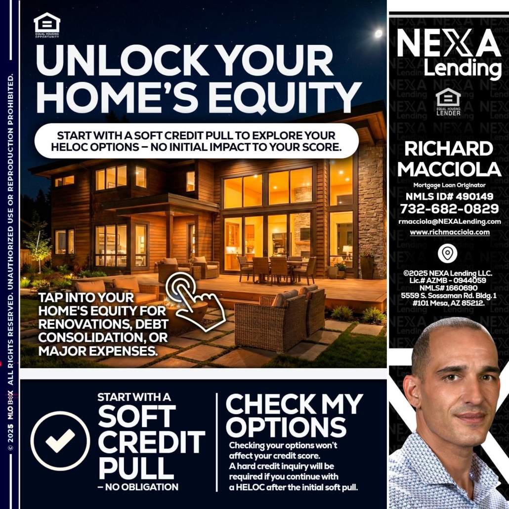 UNLOCK YOUR HOMES - Richard Macciola -Mortgage Loan OriginatorHi, my name is Richard Macciola. I’m a Loan Officer with NEXA Lending LLC., offering personalized mortgage solutions, fast customized quotes, great rates and service with integrity.